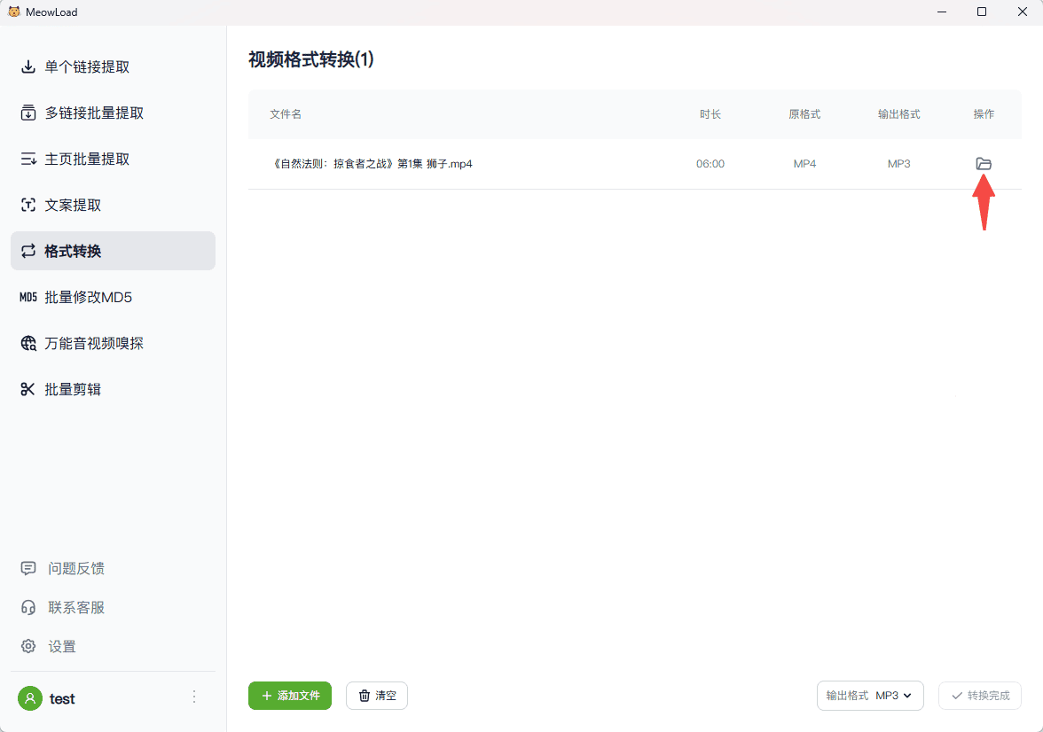 转换进度实时可见,完成后点击文件夹图标即可获取新格式的文件。
